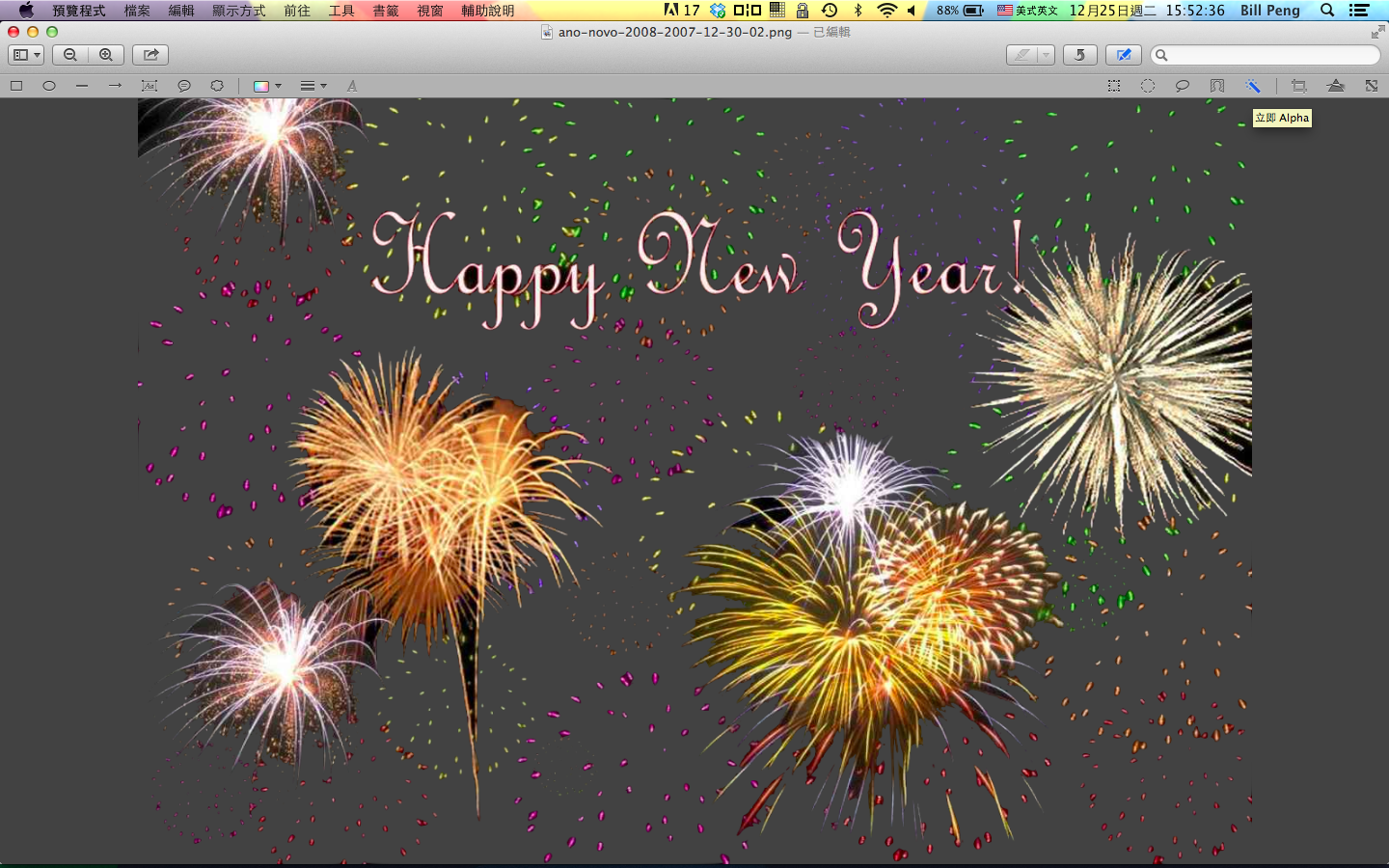 上圖是單純的煙火底圖襯在背景上的樣貌。