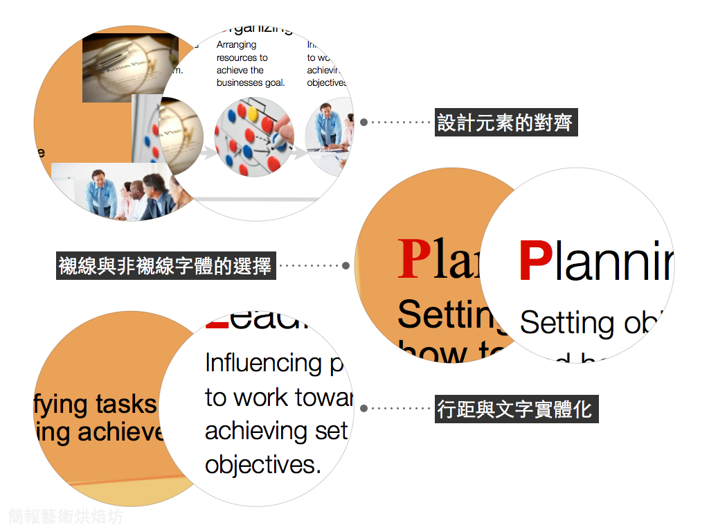 以上便是一般人在設計單張投影片排版時容易犯下的無心錯誤,