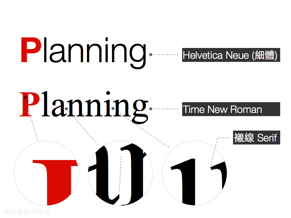 因此在投影片的設計上適合使用沒有襯線的字體。