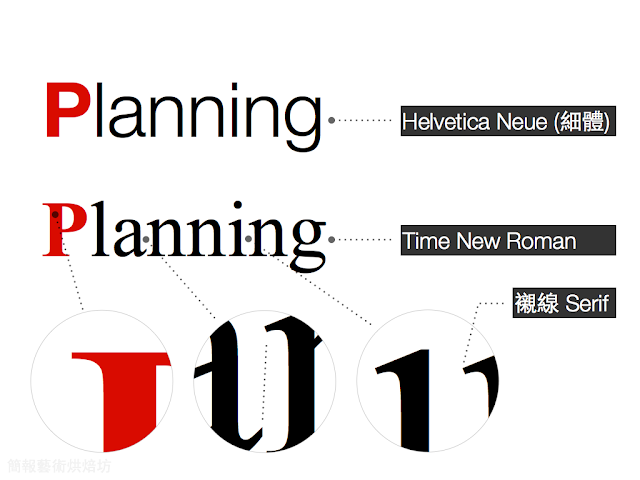 一般而言字體可以分為襯線字體與非襯線字體,