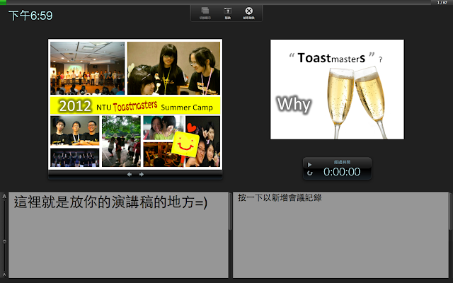 簡報者檢視畫面可以提供演講者內容的提示與依據,