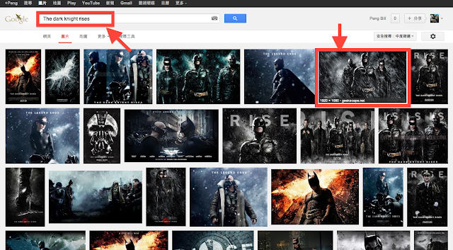 首先在Google圖片搜尋打上關鍵字”The Dark Knight Rises”