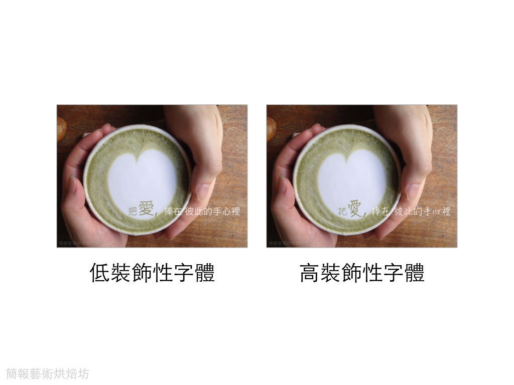 因為高裝飾性字體所透露的訊息可以很貼切的輔助講者傳遞情感訊息,