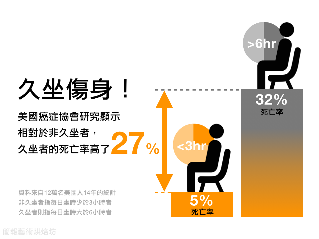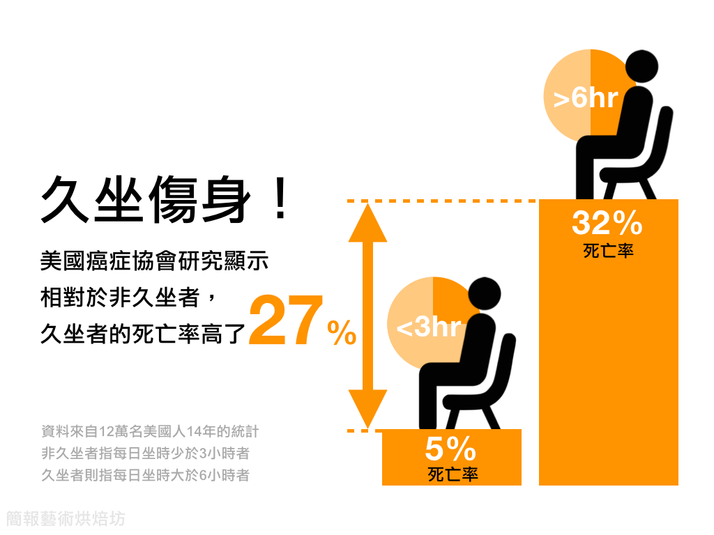 即使這些數據精確表達了久坐傷身的程度(身為工程、學術人士的最愛)