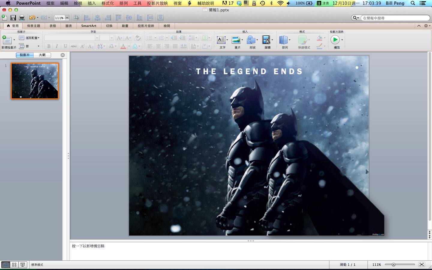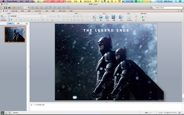 在Mac上的PowerPoint 2011也可用一樣的方法做到