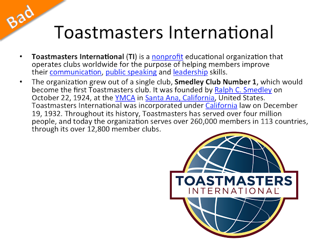 而且可以想見這一張投影片一定是出現在Toastmasters對外或是對內的介紹上,