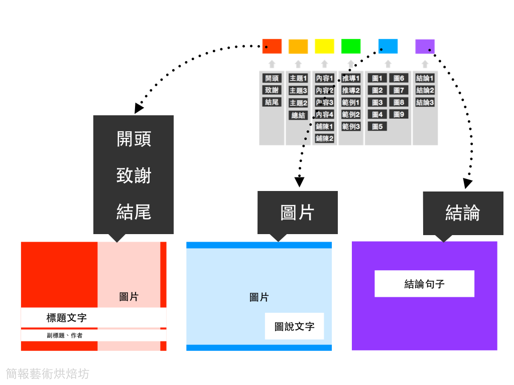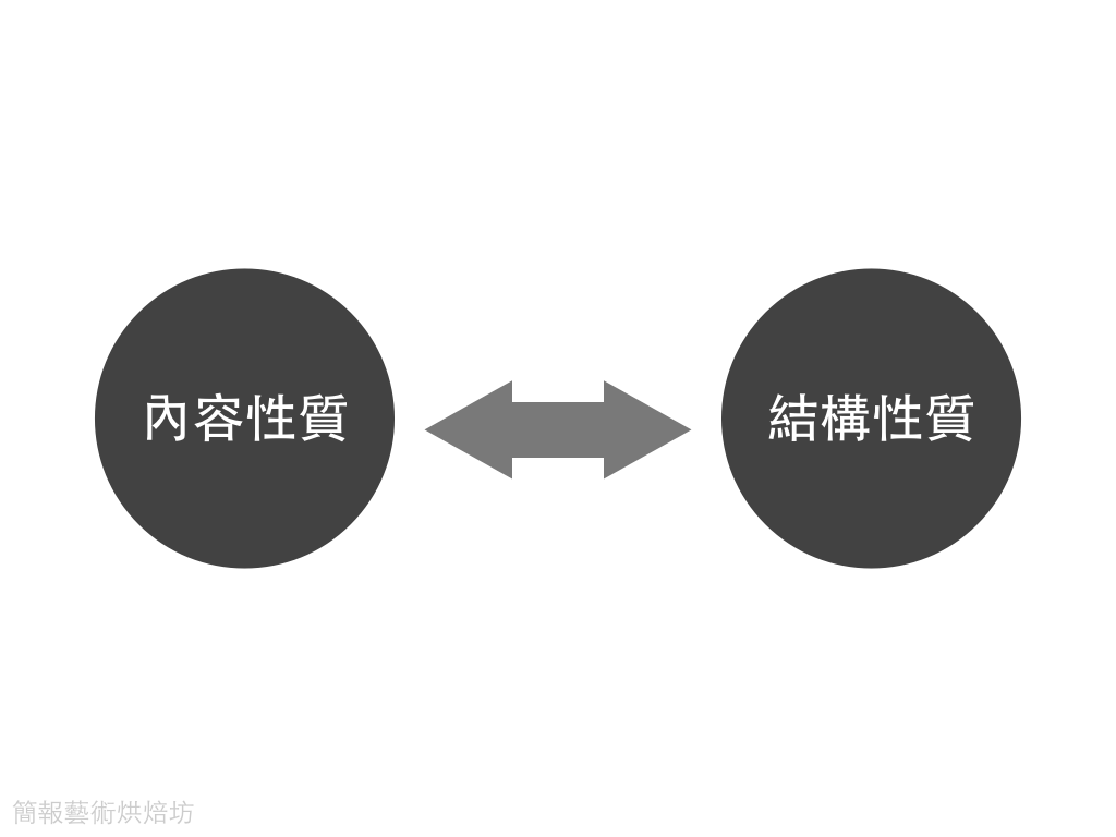 而大型的簡報(如100張左右)則應該以內容性質為主、結構性質為輔。