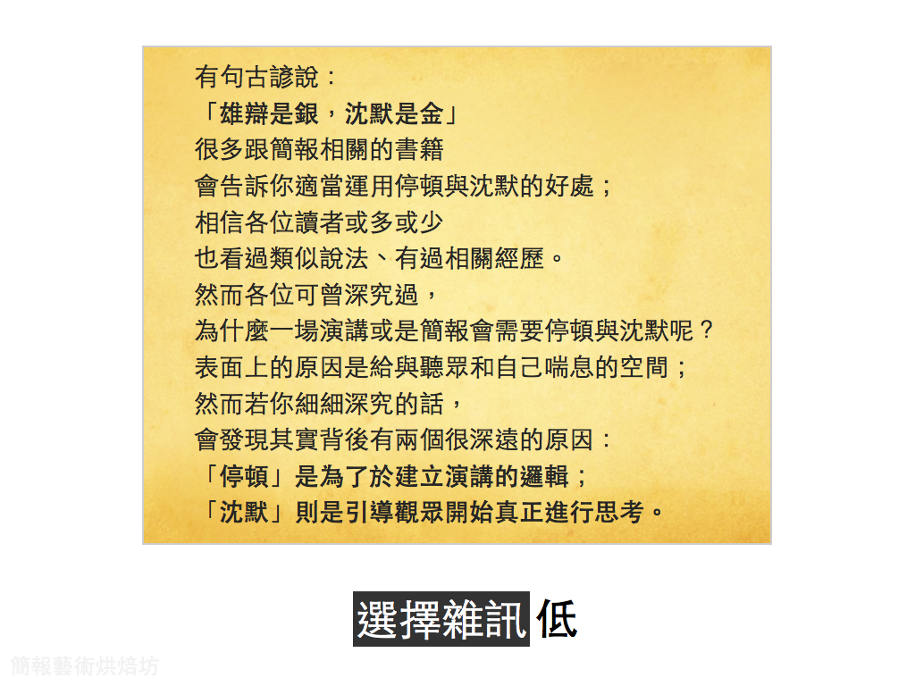 尤其是老一輩的觀眾,在簡報設計得像文件時尤其會如此;