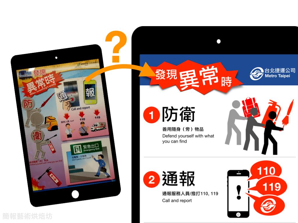 不難看出這張海報的當初設計的目的是希望民眾遇到突發狀況(異常)時,