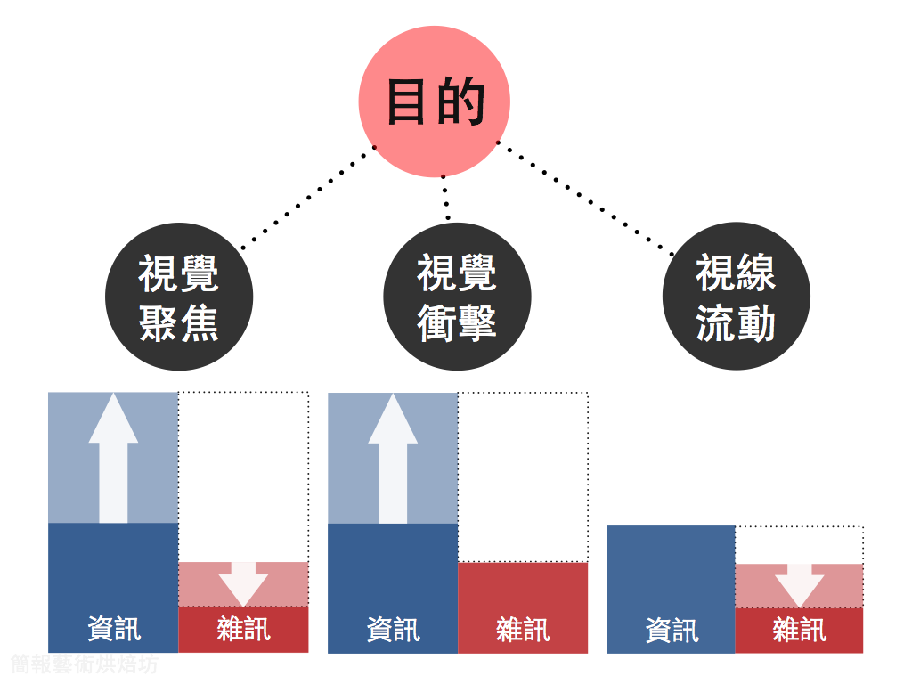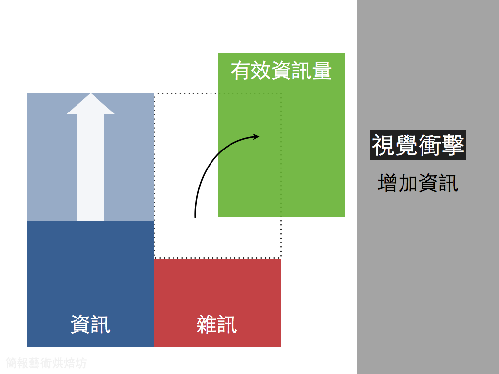 而簡報視覺設計的好壞便是取決於資訊與雜訊兩者的相對份量;