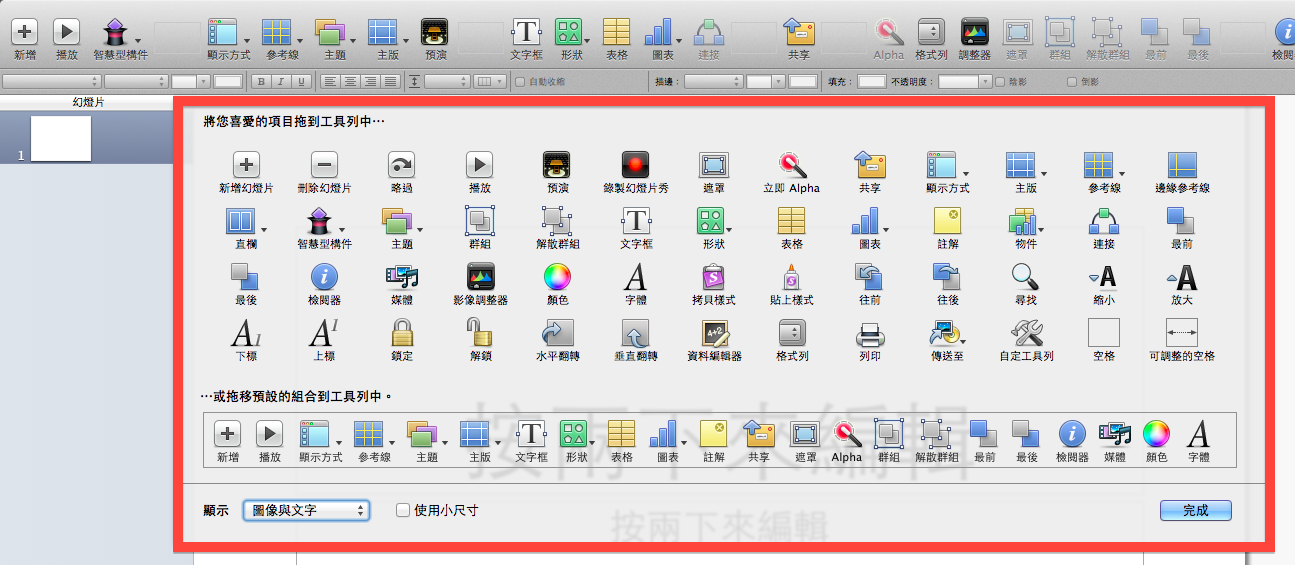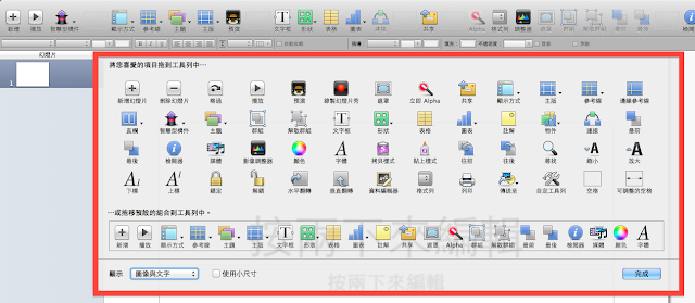 因此在這一邊Bill要和大家分享如何自訂Keynote的工具列