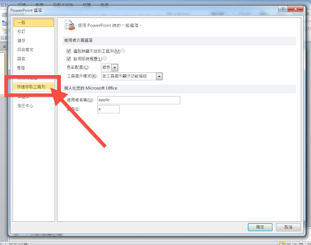 接著就會跳出「PowerPoint選項