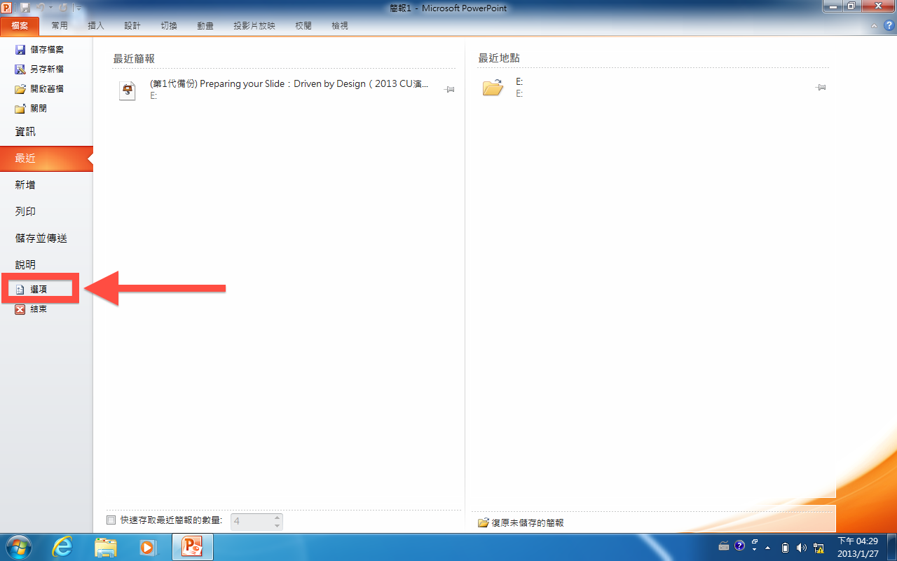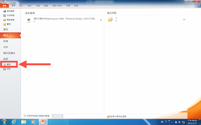 接著就會跳出「PowerPoint選項