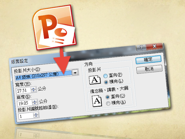 首先改變長寬比的地方,位於「設計>>版面設定」: