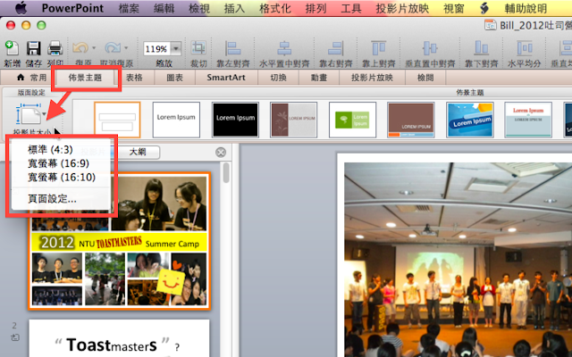 所以「如何變更簡報檔的長寬比」