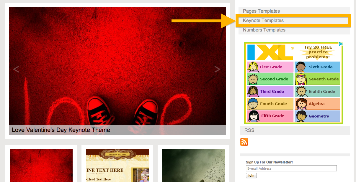 或是點選位於畫面右側的「Keynote Templates」(如下圖右側箭頭所指處)