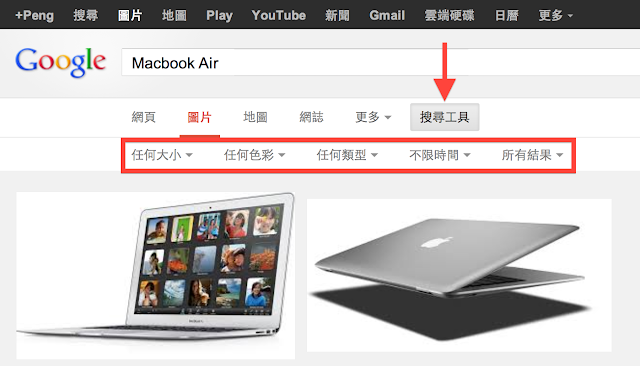 首先,就如往常一般,先在Google圖片的搜尋列鍵入想要找的東西。