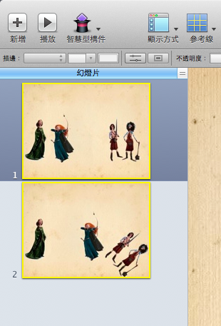 這兩張的投影片必須至少有一部分的物件是一樣或是相似(僅在顏色或是大小等等有差異)