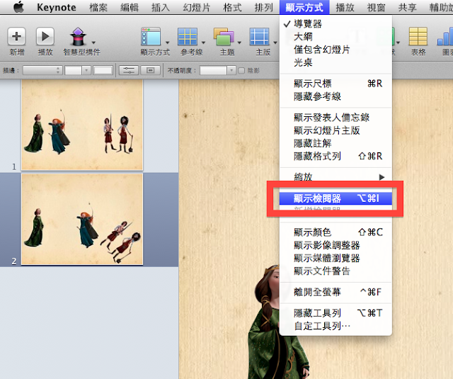 首先,先到「顯示方式>>顯示檢閱器」打開Apple電腦Mac標誌性的「檢閱器」