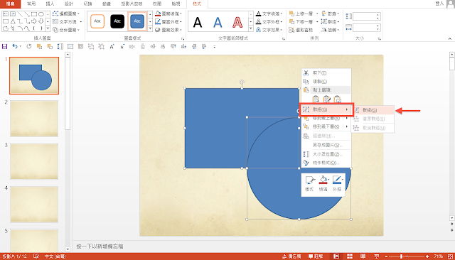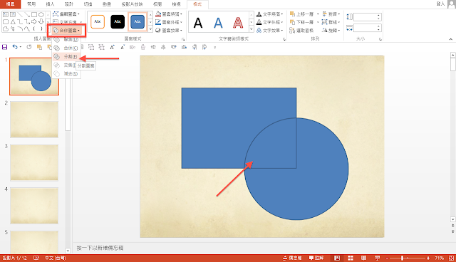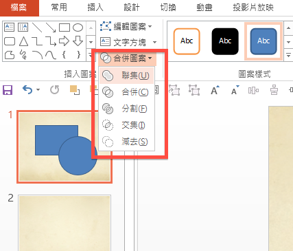 然而PowerPoint 2013的最新功能:「合併圖案以自創基本圖形」,