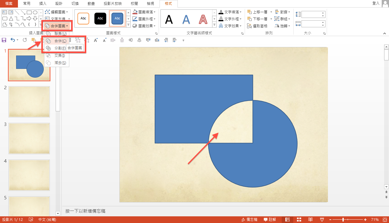 以上便是PowerPoint 2013 全新功能:「合併圖案以自創基本圖形」的基本功能展示。