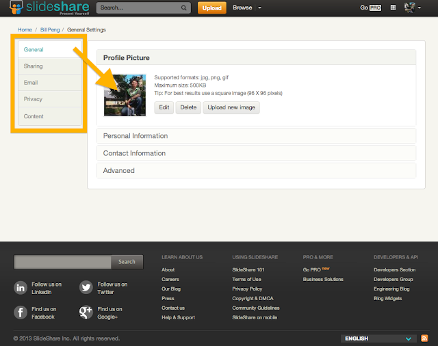 所以SlideShare會讓你先行填寫相關的基本資料,