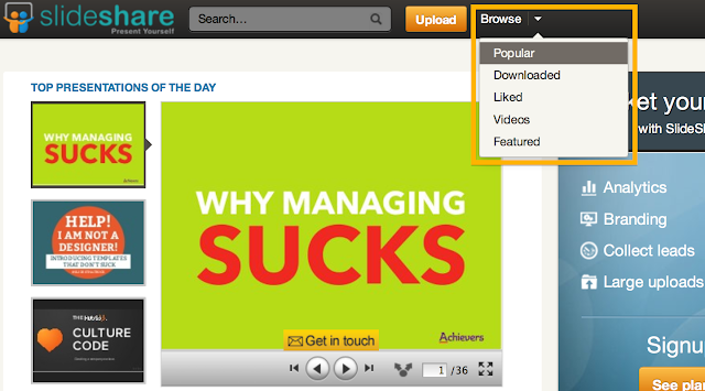 只要按下「Browse >> Popular」便可以瀏覽目前最流行、閱覽率最高的簡報: